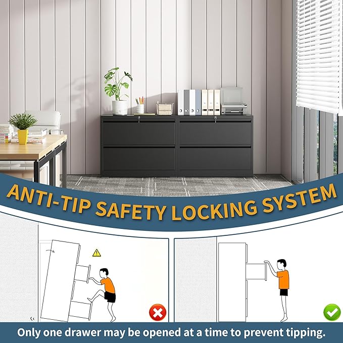 - 【Smart Anti-Tip Safety】Safety is our top priority. Our with lock feature an interlocking mechanism to ensure only one drawer can be opened at a time. it automatically maintains office file cabinet stability, effectively preventing tipping. For households with active children and pets, or in busy office environments, this is the optimal choice.
