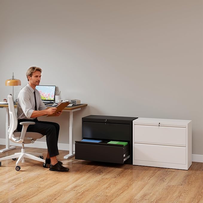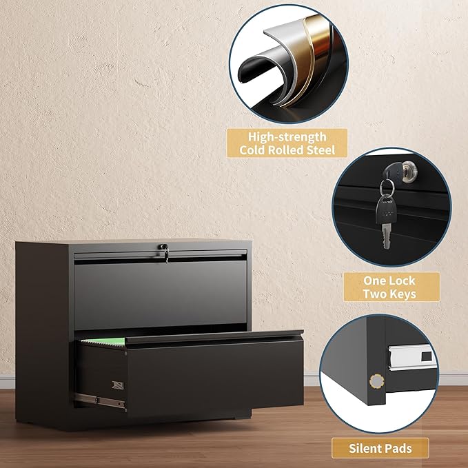 - 【One-Lock Total Document Privacy】Your sensitive documents deserve rigorous protection. With the lateral file cabinet's central locking system, a simple turn of the key securely locks all drawers. This prevents unauthorized access to your files. We thoughtfully include two master keys with the metal storage cabinet, ensuring your peace of mind.