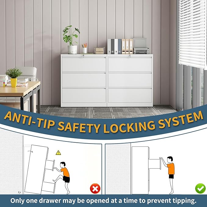 - 【Smart Anti-Tip Safety】Safety is our top priority. Our with lock feature an interlocking mechanism to ensure only one drawer can be opened at a time. it automatically maintains office file cabinet stability, effectively preventing tipping. For households with active children and pets, or in busy office environments, this is the optimal choice.