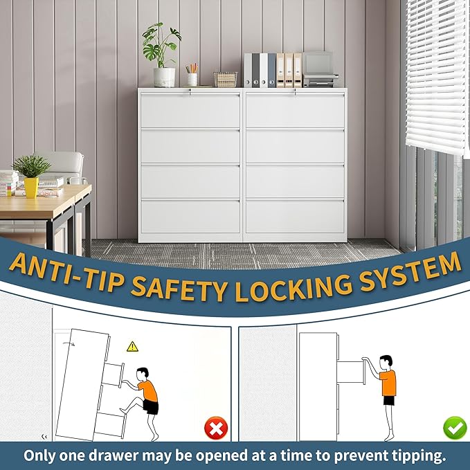 - 【Smart Anti-Tip Safety】Safety is our top priority. Our with lock feature an interlocking mechanism to ensure only one drawer can be opened at a time. it automatically maintains office file cabinet stability, effectively preventing tipping. For households with active children and pets, or in busy office environments, this is the optimal choice.