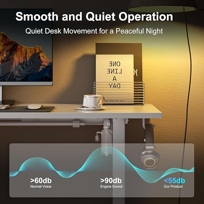 - Quiet and Safe Operation: This electric standing desk delivers powerful performance and quiet stability for your workspace. It features a robust motor that smoothly lifts up to 180 lbs, easily accommodating all your work or gaming equipment. Operating at under 45dB, it ensures a quiet environment for focused sessions. Built with a reinforced steel support tube and anti-collision safety mechanism, it offers enhanced durability and secure, reliable height adjustment.