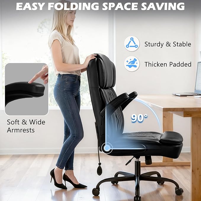 400lbs Executive Office Chair with Flip up Arm,Ergonomic Big and Tall Computer Desk Chairs,Breathable PU Leather Chair with Adjustable Lumbar Support,High Back Ofiice Chair with Pocket Spring Cushion