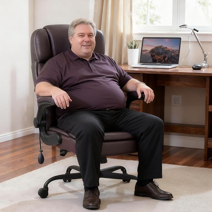 400lbs Executive Office Chair with Flip up Arm,Ergonomic Big and Tall Computer Desk Chairs,Breathable PU Leather Chair with Adjustable Lumbar Support,High Back Ofiice Chair with Pocket Spring Cushion